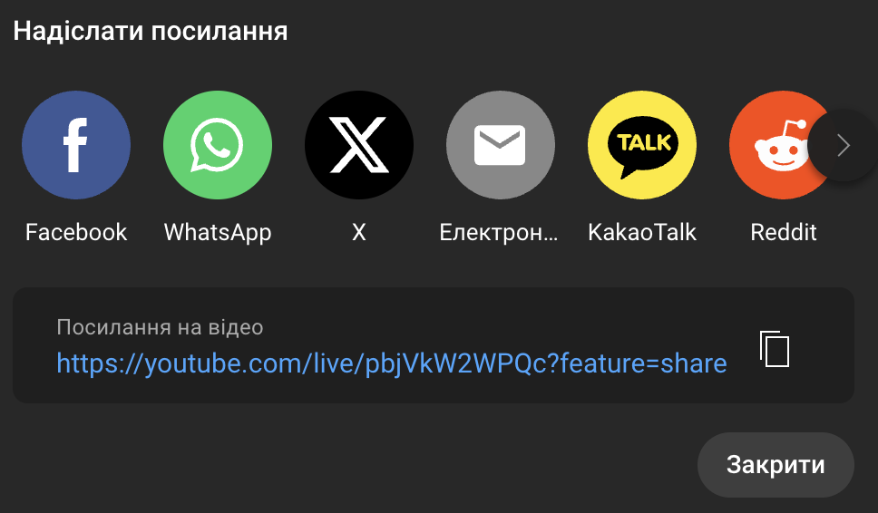 Заключним кроком – скопіюйте “Посилання на відео” виділивши посилання і натиснувши правим клікером миші, або натисніть на значок скопіювати (зправа посилання).